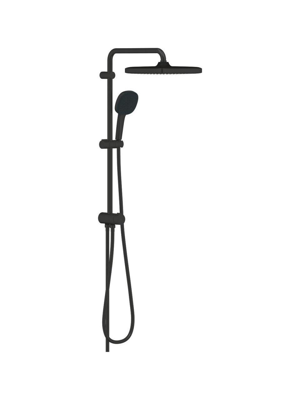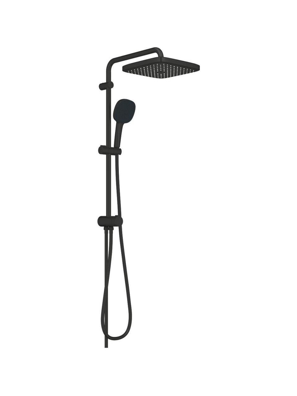 Duvara monte edilen bu sıva üstü duş sistemi; 250×250 mm tepe duşu, 110×110 mm el duşu, yön değiştirici, ayarlanabilir sürgü sistemi ve TwistStop hortumlarıyla eksiksiz ve konforlu bir kullanım sağlar. Mevcut duş bataryalarıyla uyumlu yapısı sayesinde hızlı ve kolay bir yükseltme çözümüdür.